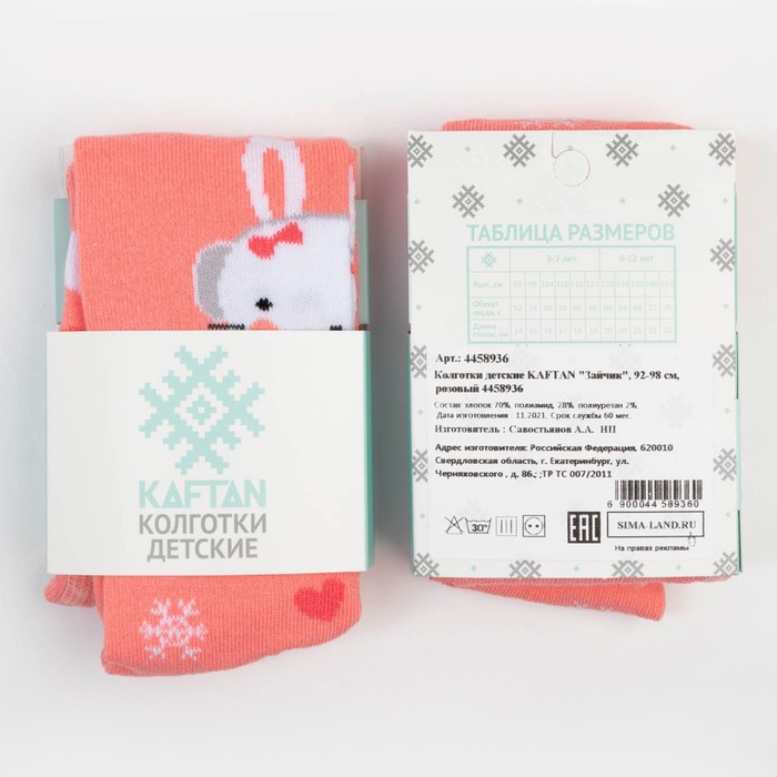 Колготки детские KAFTAN "Зайчик" 116-122 см, розовый — Характеристики
