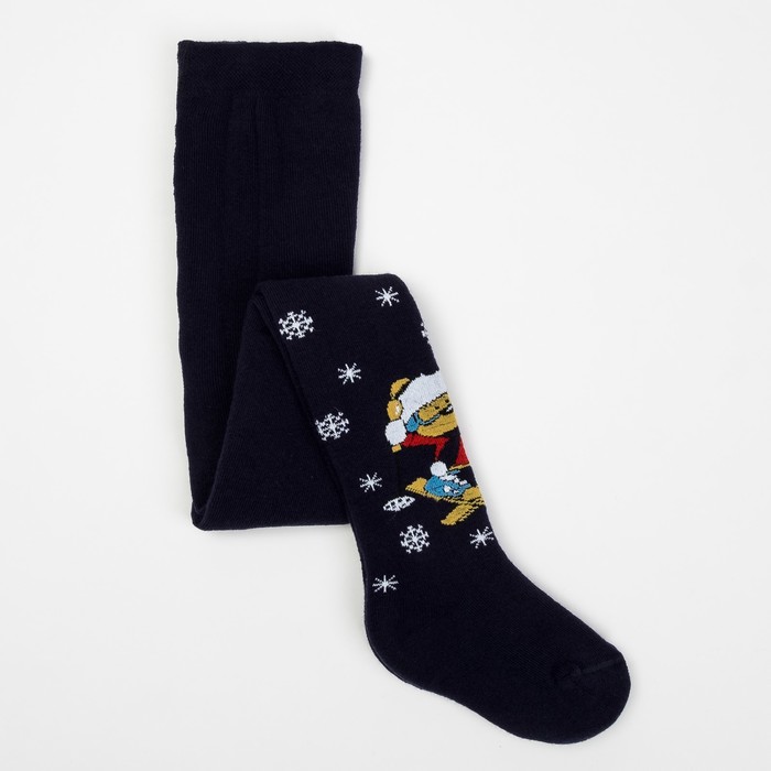 Колготки детские новогодние махровые, цвет тёмно-синий, рост 92-98