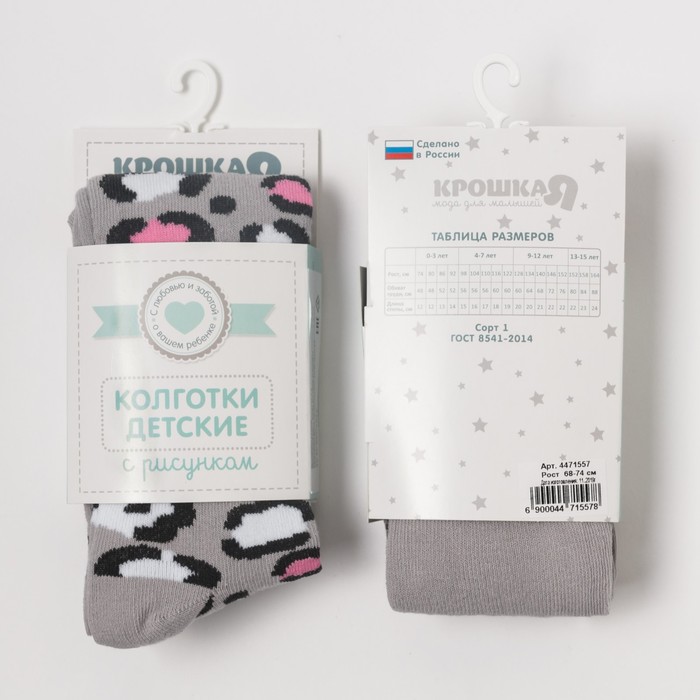 Колготки детские Крошка Я «Гепард», серый, рост 68-74 см — Характеристики