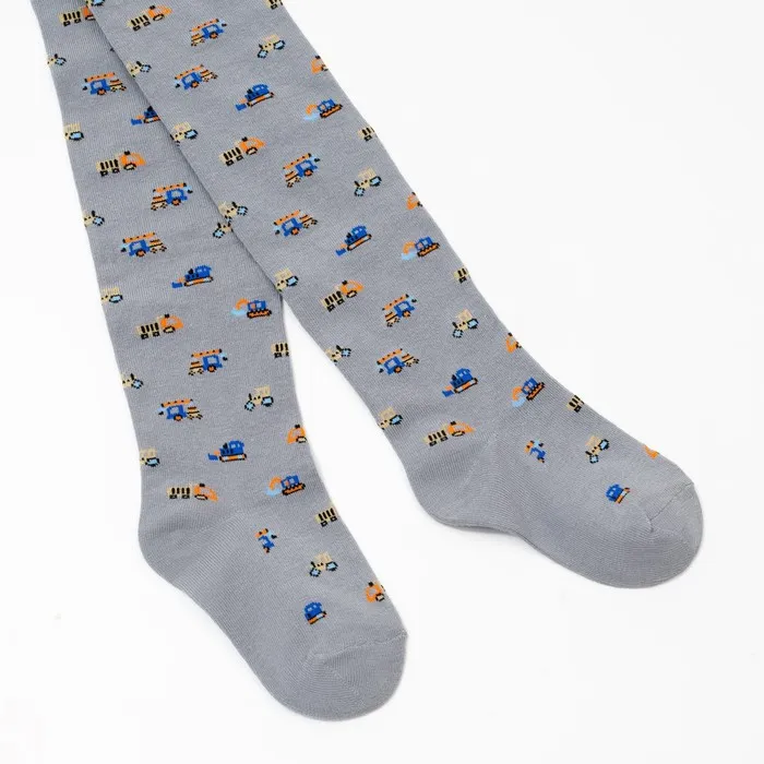 Колготки детские «Строительная техника», серые, рост 98-104 см