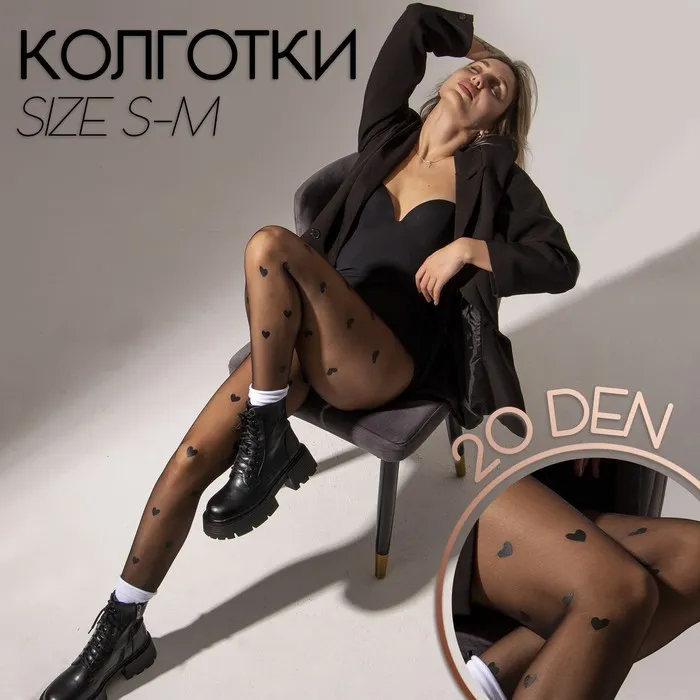 Колготки «Сердечки», цвет чёрный, размер S — Характеристики