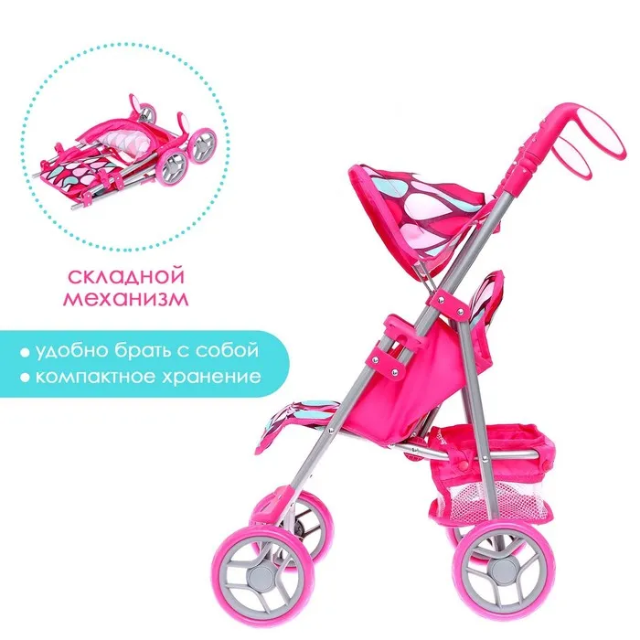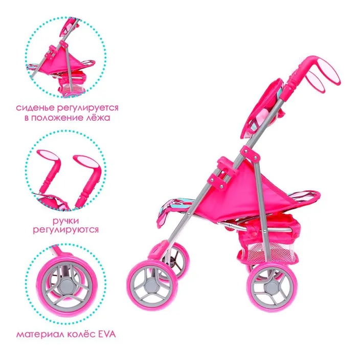 Коляска для кукол летняя, с крышей, ручка регулируется, металл — Характеристики