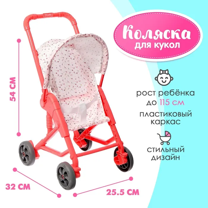 - Яркий и привлекательный дизайн коляски понравится любой девочке.