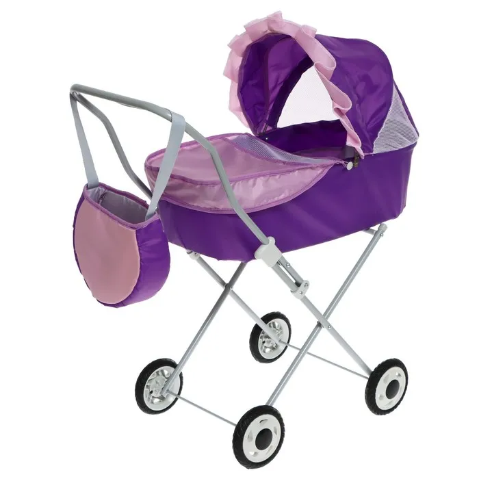 - Вместительная коляска подходит для большинства популярных моделей кукол. С таким аксессуаром можно гулять, возить любимую игрушку и даже перевозить мелкие аксессуары в отсеке для хранения.