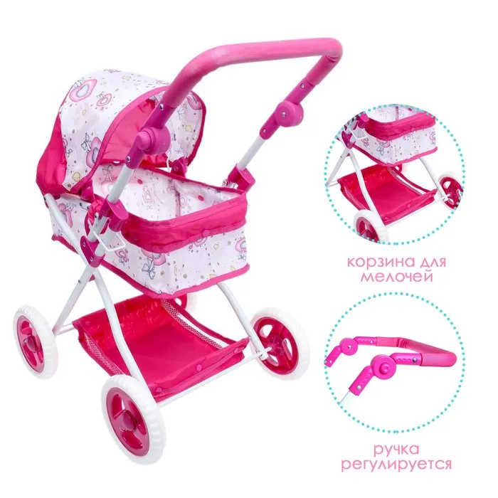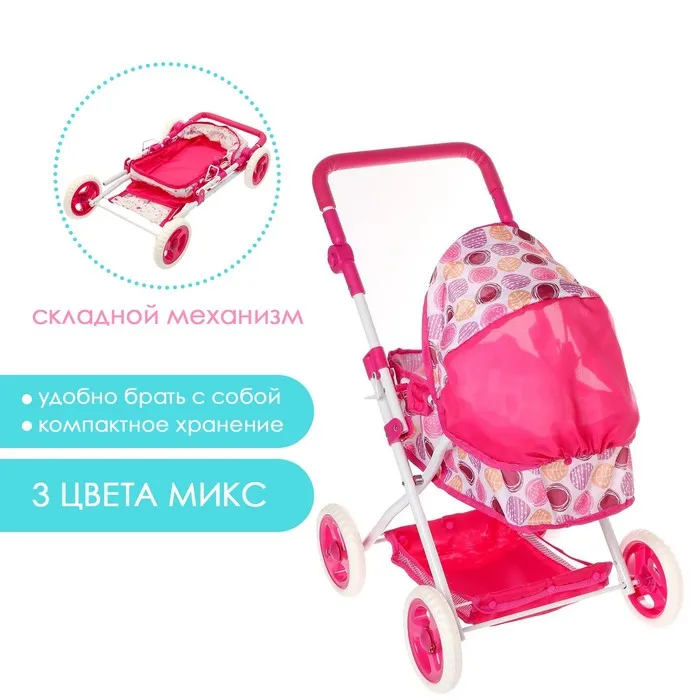 Коляска для кукол, с корзиной, зимняя, металлический каркас, МИКС — Характеристики