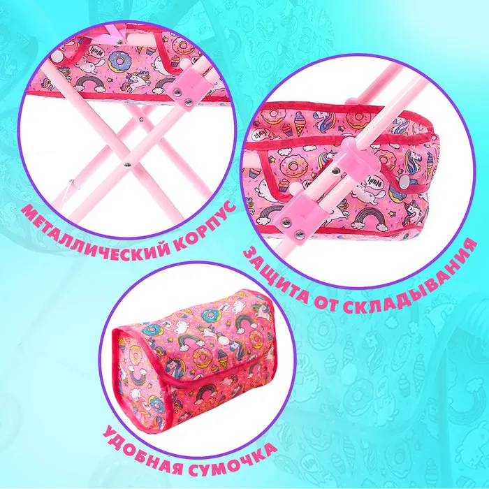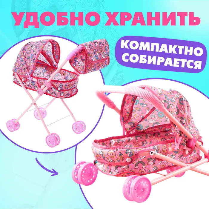 Именно по этим причинам коляска для куклы не просто полезна, но и необходима для того, чтобы разнообразить досуг ребёнка. Изделие подходит для любой погоды. Благодаря крепким пластиковым колёсам и металлическому каркасу коляска очень устойчива при езде. Вы можете положить куколку в люльку и поднять козырёк, чтобы ей было тепло.