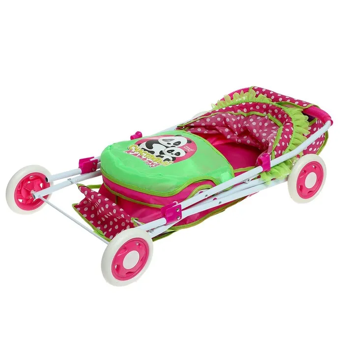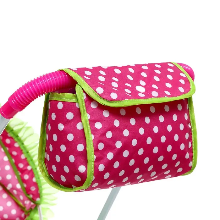 - Коляска складывается и занимает мало места. Корзина и сумка в комплекте будут служить местом хранения для всех необходимых вещей ребёнка и его пупса.