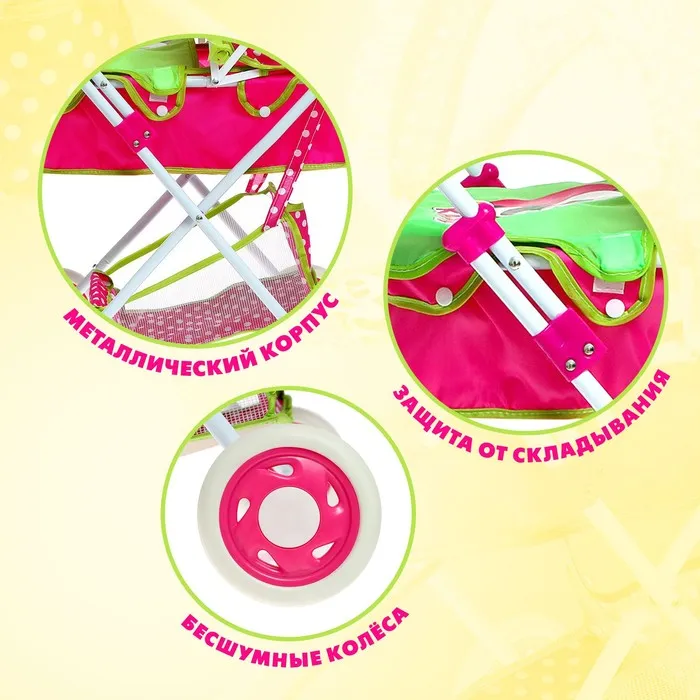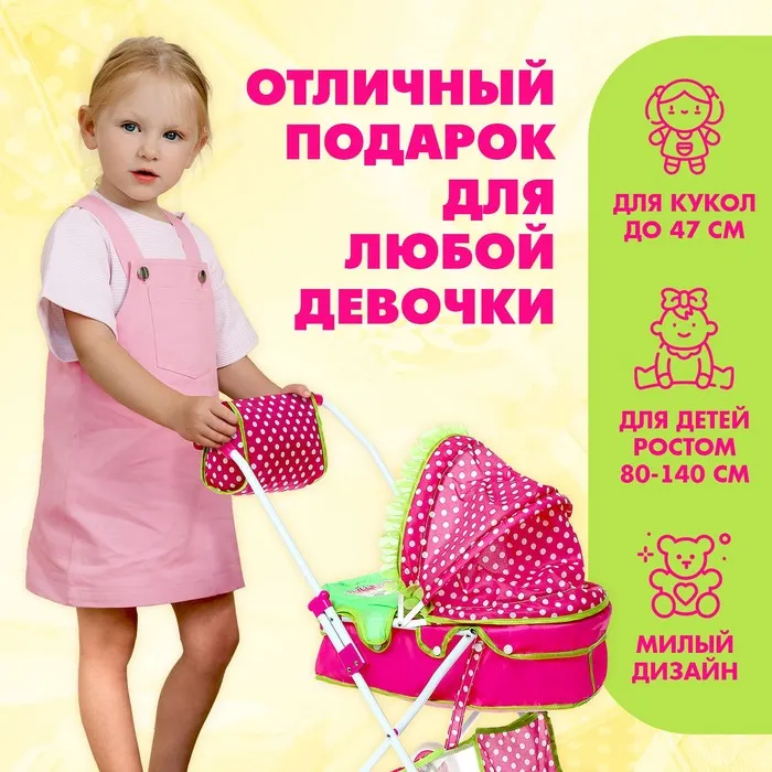 Коляска для кукол «Счастливый карапуз» универсальная, с корзиной и сумкой — Характеристики