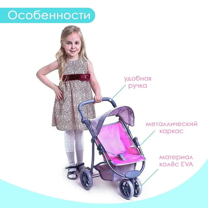 Коляска для кукол, трёхколёсная, металлический каркас — Характеристики