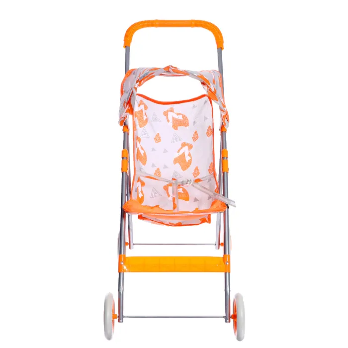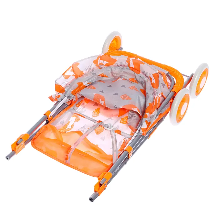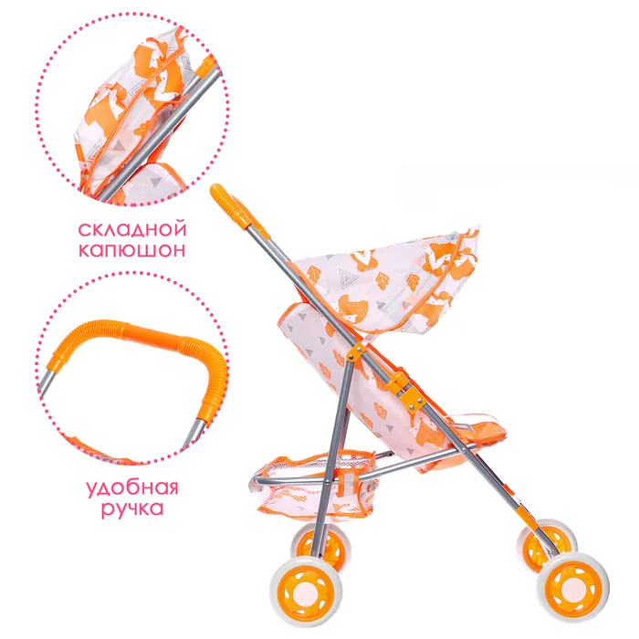 Летняя прогулочная коляска для кукол с дизайном «Лисички» станет отличным дополнением к играм. Модель снабжена оранжевым капюшоном и устойчивым каркасом, выполненным из металла и пластика.
