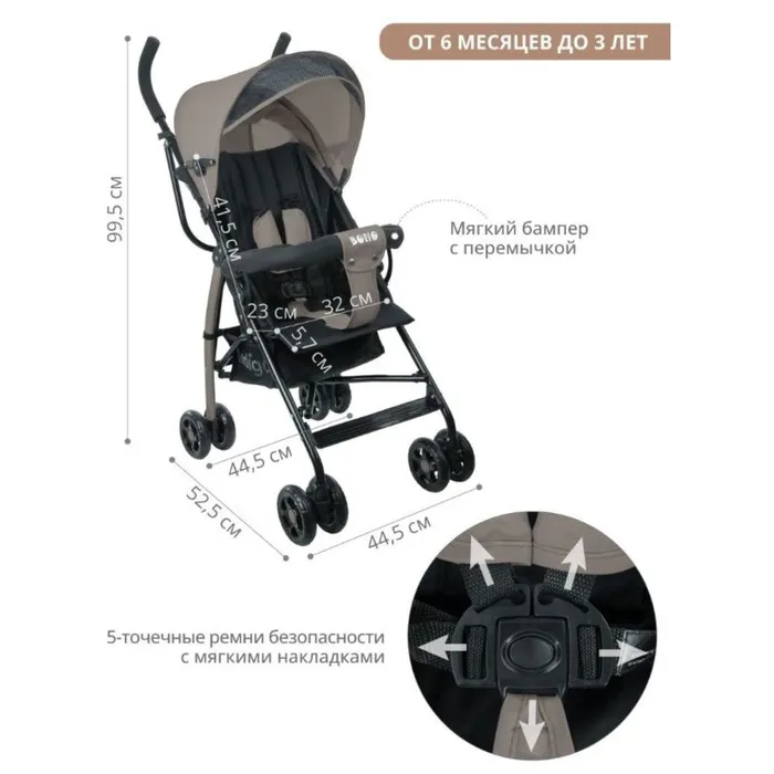 · Оснащена пятиточечные ремнями безопасности и перемычкой между ножек;