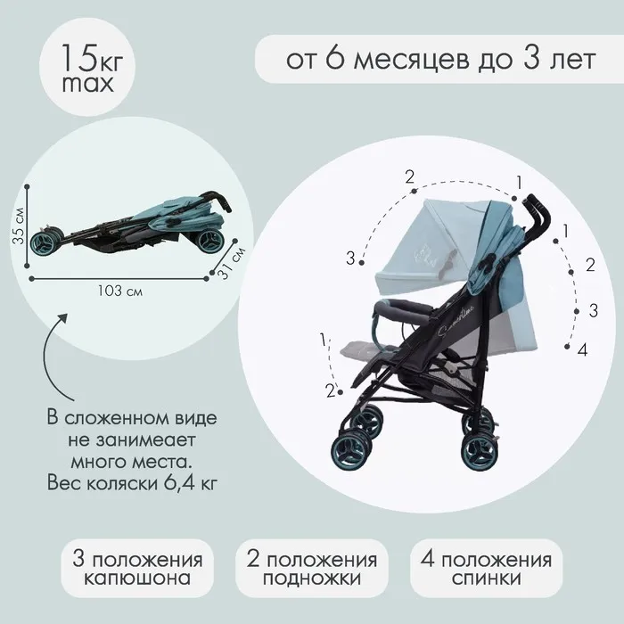 Коляска отличается комфортабельностью, лёгкостью (общий вес всего 7 кг) и стильным дизайном.