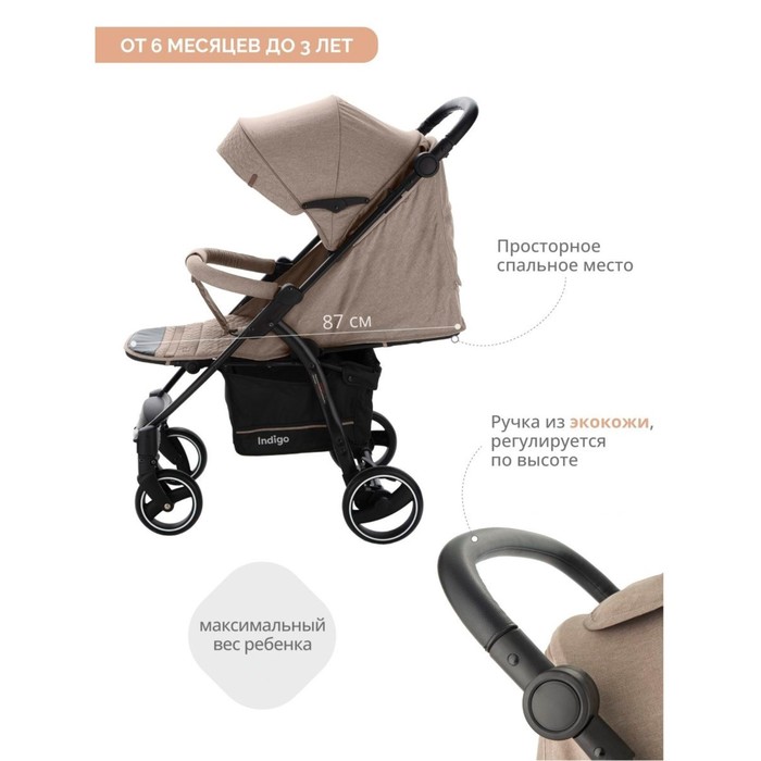 Коляска прогулочная детская Indigo SIGMA LUX, цвет бежевый — Характеристики