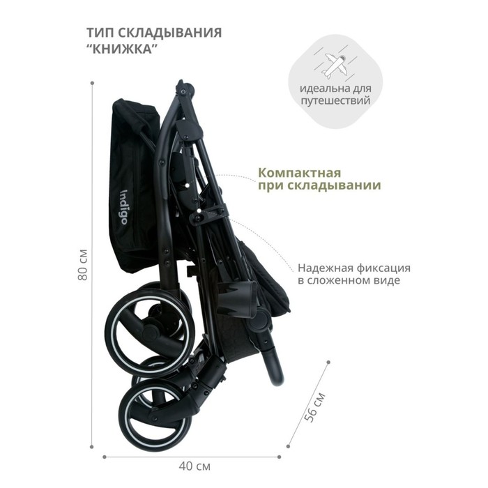 Демисезонная коляска легко складывается книжкой. В сложенном виде надежно фиксируется и удобна в хранении и перевозках.