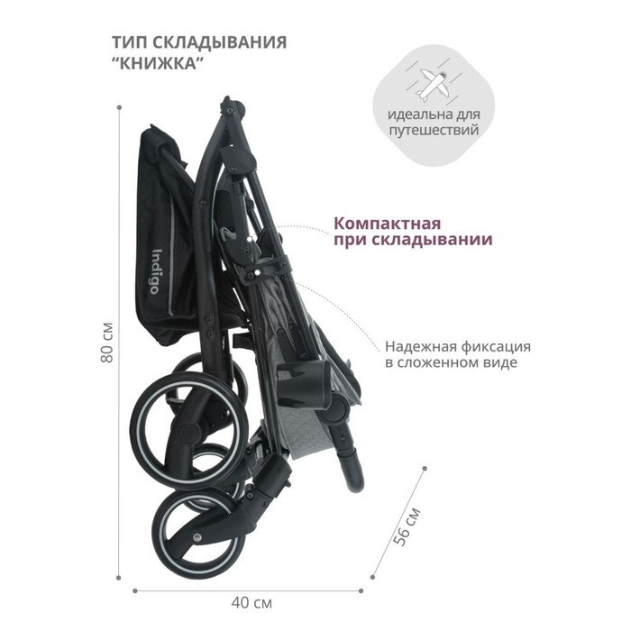 Демисезонная коляска легко складывается книжкой. В сложенном виде надежно фиксируется и удобна в хранении и перевозках.