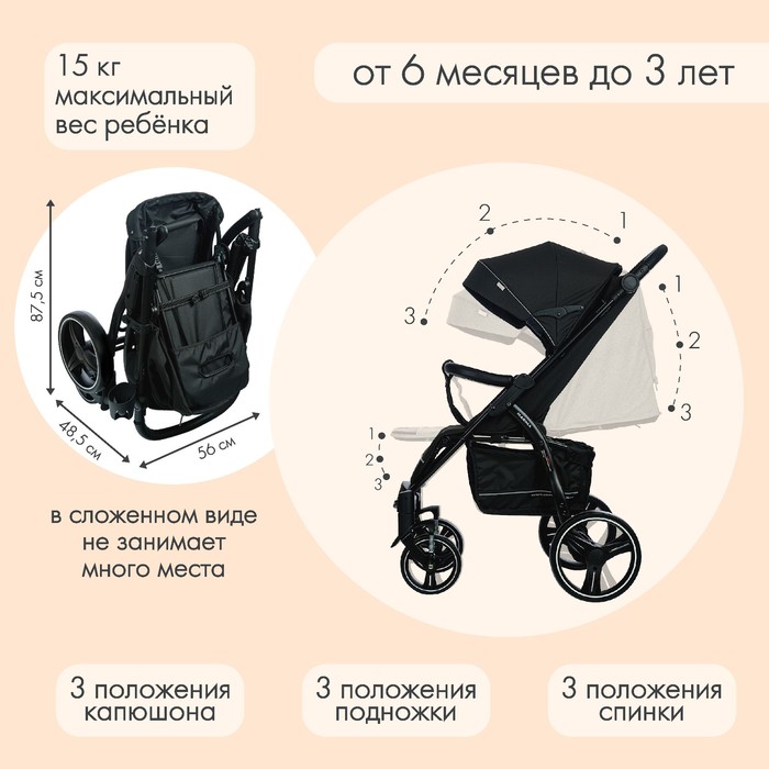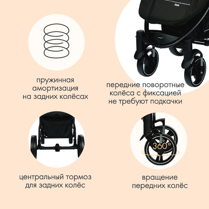Коляска прогулочная детская MAXIMA (INDIGO), съемный бампер, чёрная — Характеристики