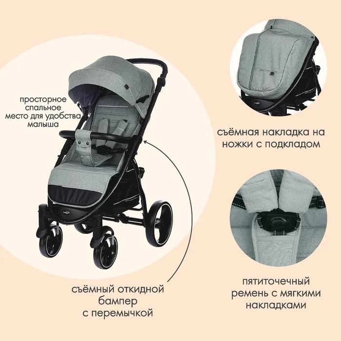 Коляска прогулочная детская MAXIMA (INDIGO), съемный бампер, зелёная — Характеристики