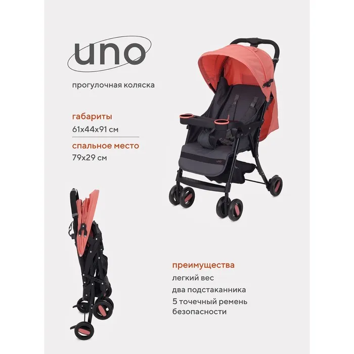 Коляска прогулочная детская RANT basic «UNO», складывается в трость, цвет Cloud pink — Характеристики