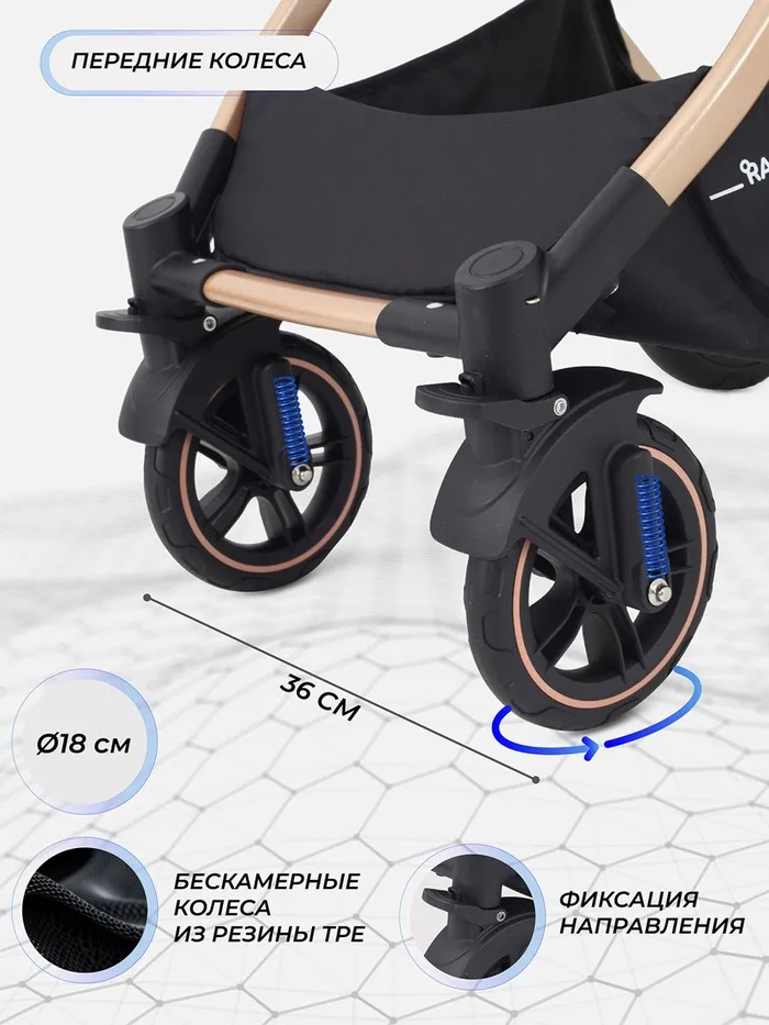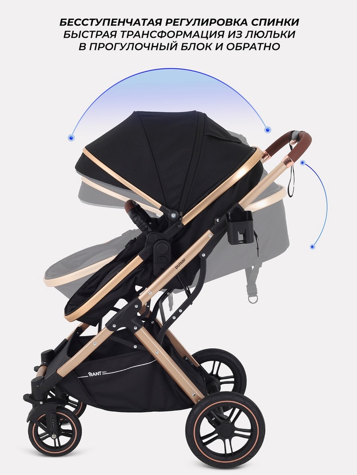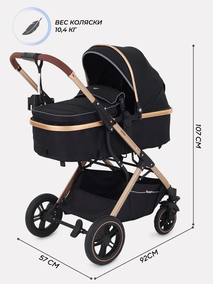Коляска - трансформер детская RANT basic PULSAR GOLD (2в1) RA160, черный — Характеристики