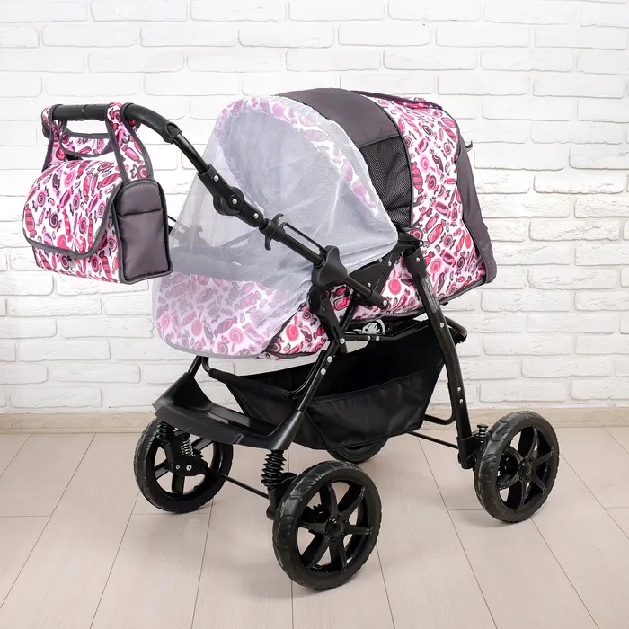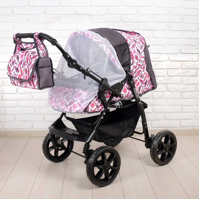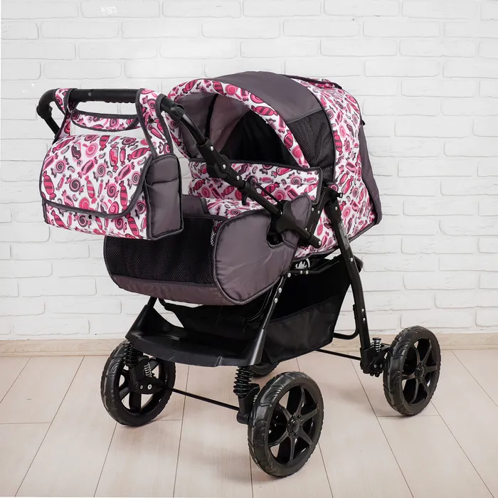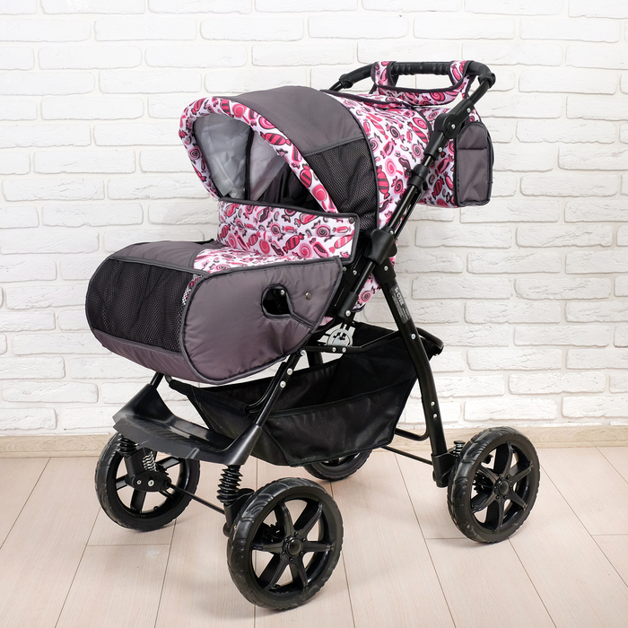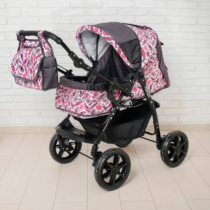 Коляска-трансформер «Гном», пластиковые колёса, оттенки розового, рисунок МИКС — Характеристики