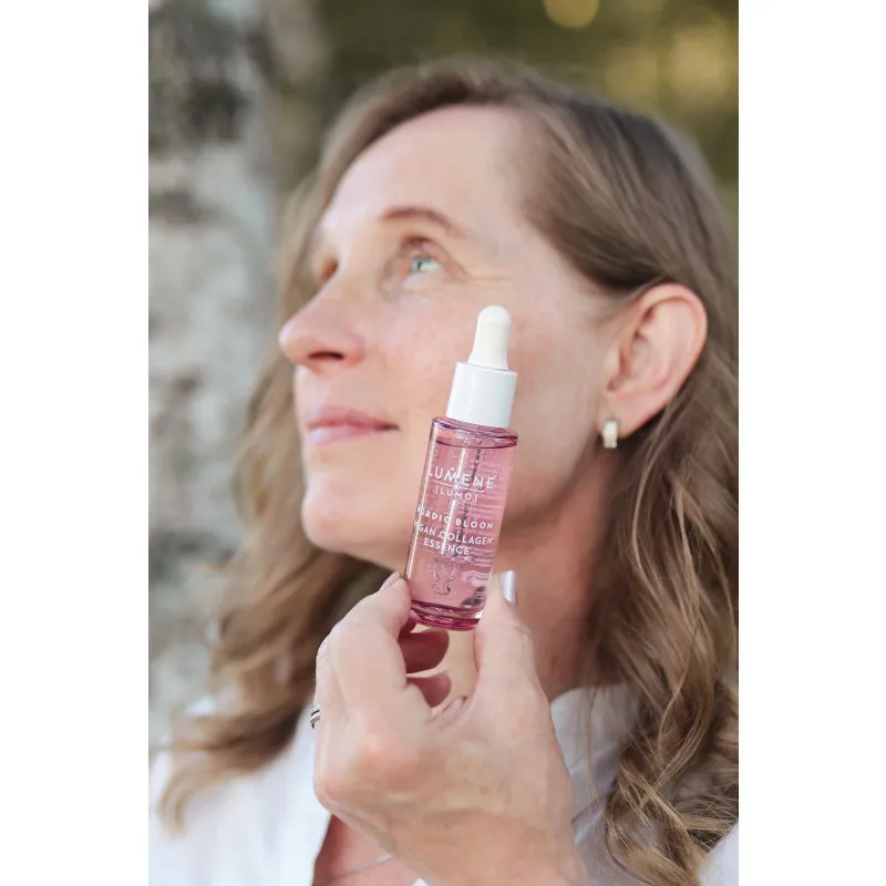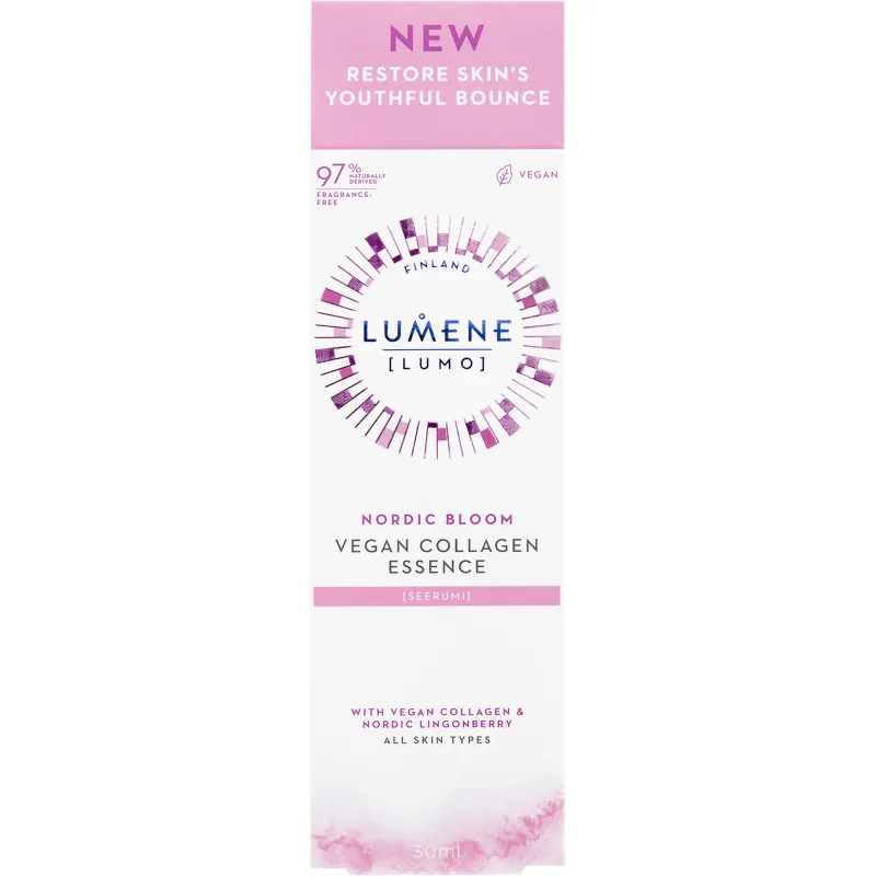 Коллагеновая сыворотка Lumene Lumo помогает разгладить кожу и восстановить её естественную упругость. Эта уплотняющая сыворотка делает кожу более упругой и молодой, уменьшая видимые признаки уменьшения коллагена, такие как морщины. Формула сыворотки имеет гелеобразную текстуру, содержащую веганский коллаген, северную брусничную воду и три типа гиалуроновой кислоты. Состав без ароматизаторов и подходит для веганов. Упаковка изготовлена из переработанных и подлежащих переработке материалов. Объем упаковки 30 мл.