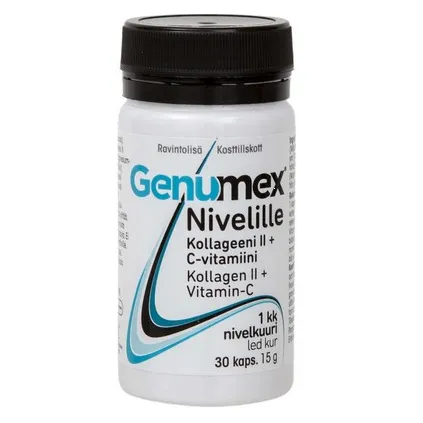 Genumex подходит всем, кто заботится о своих суставах, например: спортсменам, любителям фитнеса и пожилым людям. Содержит высококачественный и эффективный запатентованный коллаген II типа. Витамин С в продукте способствует образованию коллагена для нормальной работы функций костей и хрящей.