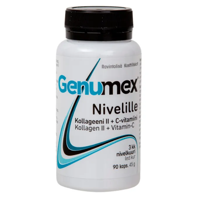 Genumex подходит всем, кто заботится о своих суставах, например: спортсменам, любителям фитнеса и пожилым людям. Содержит высококачественный и эффективный запатентованный коллаген II типа. Витамин С в продукте способствует образованию коллагена для нормальной работы функций костей и хрящей.