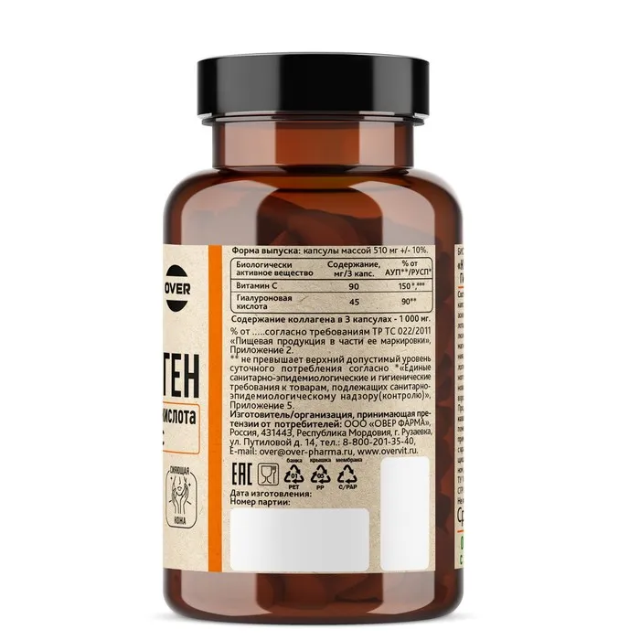 витамин С - 90 мг; гиалуроновая кислота - 45 мг.