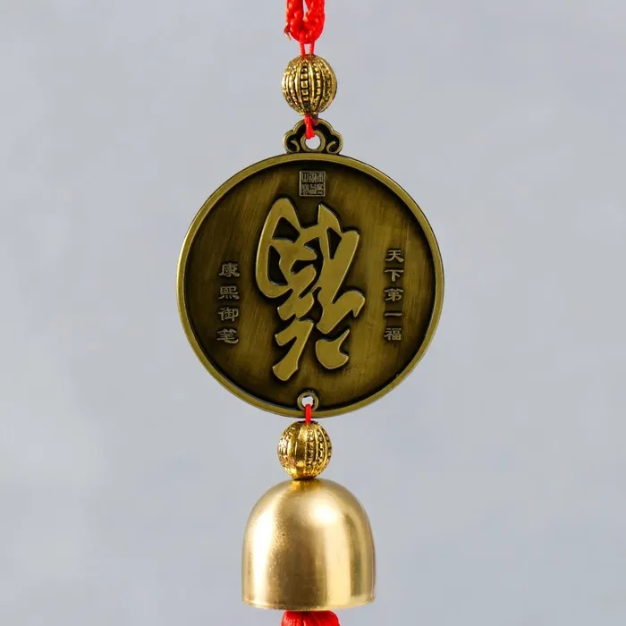 Колокольчик металл "Иероглиф - благословение" 1 колокол d=2,5 см 37х5 см