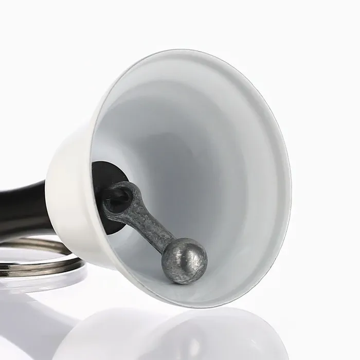 Основа яркого и стильного аксессуара из тонкого металла обеспечивает чистый и звонкий звук, а ручка помогает удерживать изделие. Колокольчик имеет белый цвет, который привлекает внимание и поднимает настроение. Его форма напоминает классический колокольчик, он компактный и удобный в использовании. Благодаря брелоку, колокольчик можно носить на ключах, рюкзаке или сумке, а также использовать как украшение для интерьера.