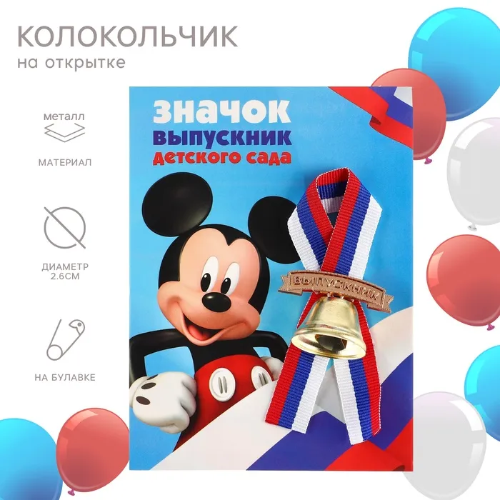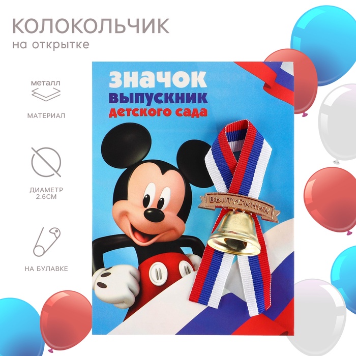 Колокольчик на выпускной «Выпускник детского сада», 2.6 см, Микки Маус — Характеристики