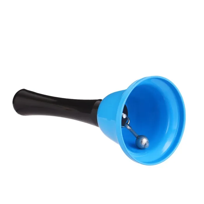 Яркий и стильный, изготовленный из тонкого металла он обеспечивает чистый и звонкий звук, а ручка помогает удерживать изделие. Колокольчик имеет голубой цвет, который привлекает внимание, компактный и удобный в использовании.