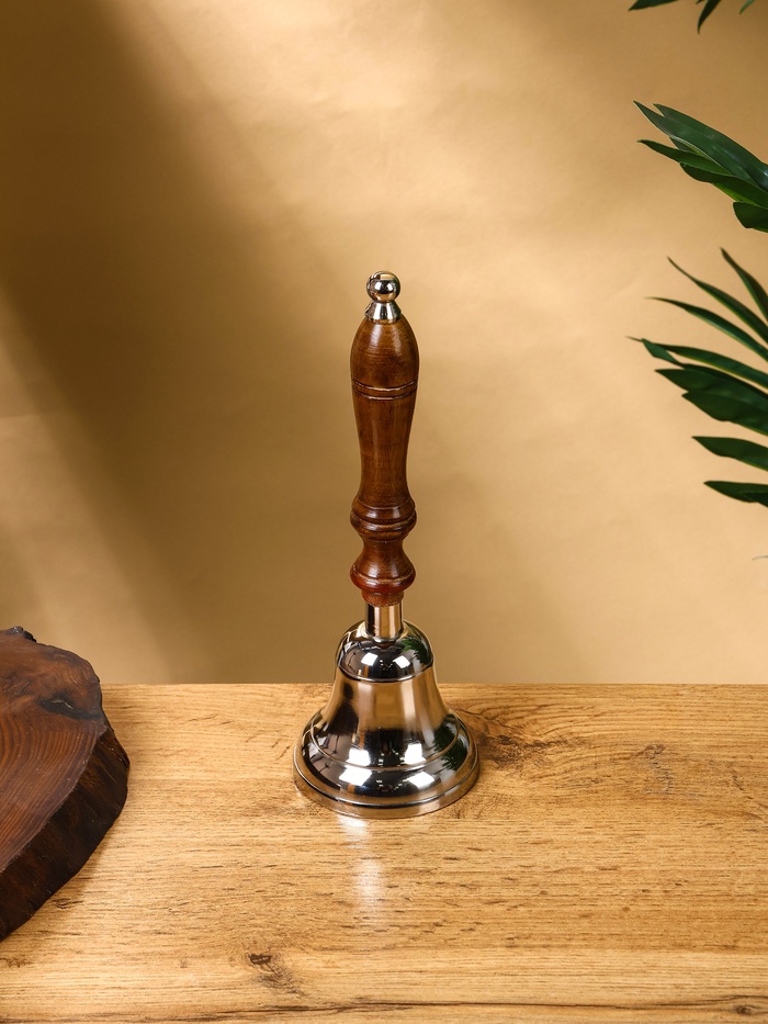 Колокольчик «Серебряный звон», 8×8×24 см, алюминий, с деревянной ручкой