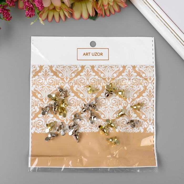 Колокольчики-мини для творчества, золотой, серебряный, d=0.8 см набор 25 шт.