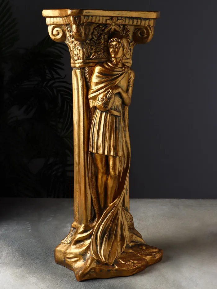 Добавьте ноту античного величия в ваш интерьер с этой изысканной декоративной колонной. Изготовленная из прочного гипса с эффектным покрытием под бронзу, она станет элегантным акцентом в классическом или современном пространстве. Детализация фигуры юноши демонстрирует искусность мастеров, вдохновленных традициями древней скульптуры.