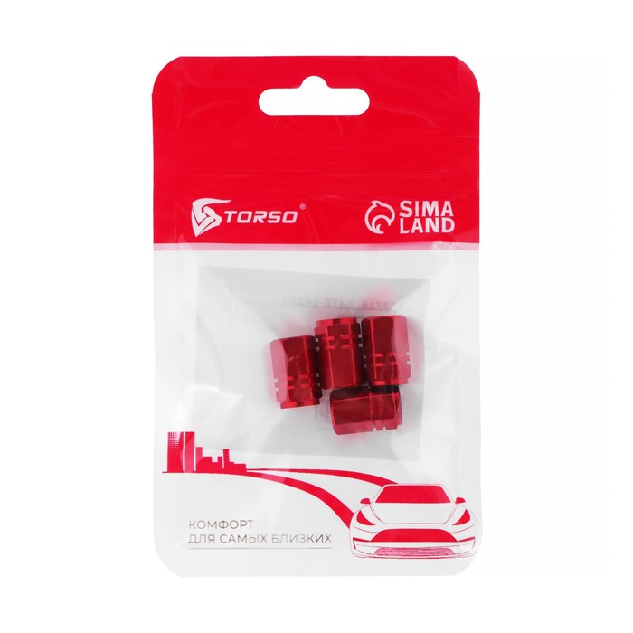 Колпачок на шинный вентиль TORSO, красный, набор 4 шт — Характеристики