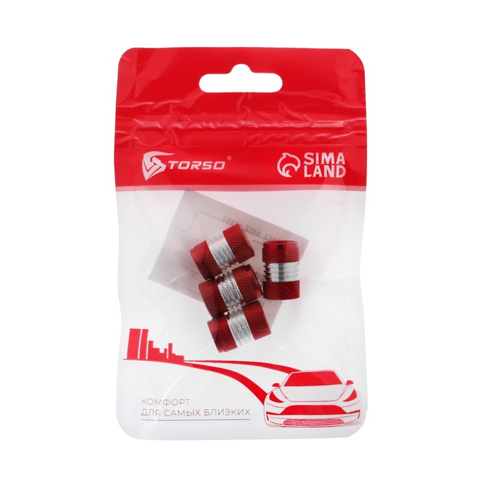 Колпачок на вентиль TORSO,автомобильный, красный, набор 4 шт — Характеристики