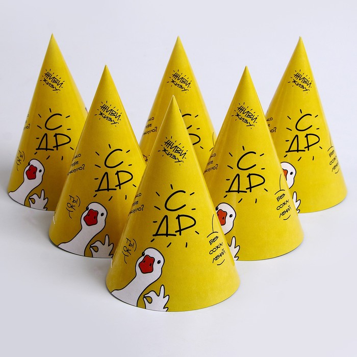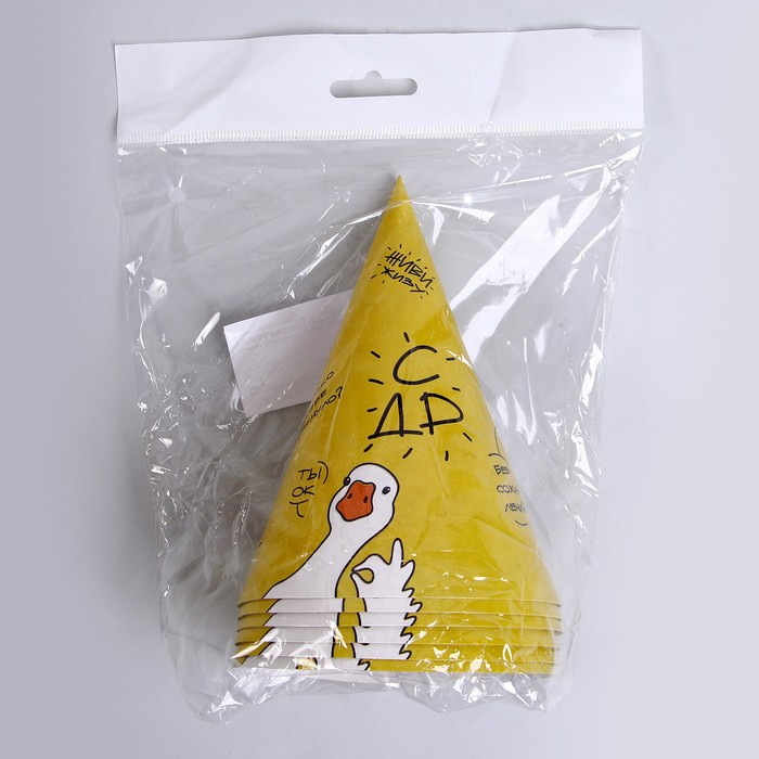 Колпак бумажный на день рождения«Гусь», в наборе 6 шт.