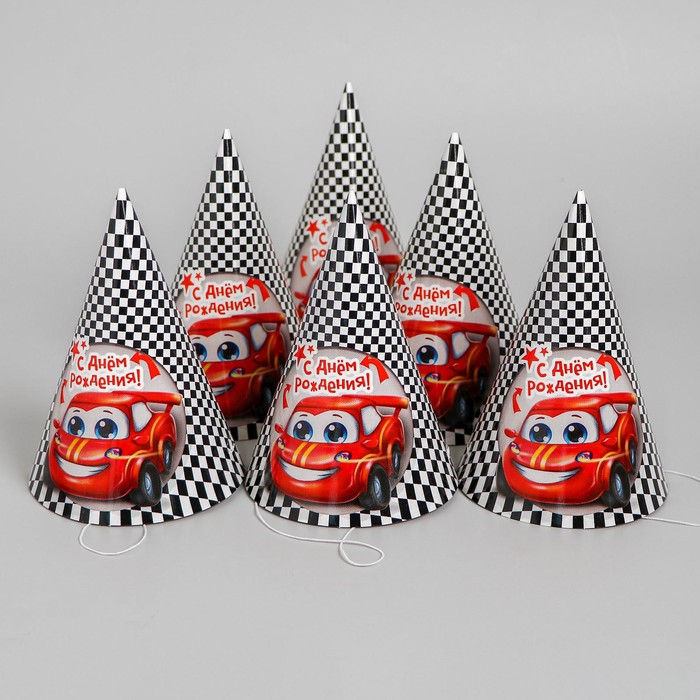 Колпак бумажный «С днём рождения», тачка, набор 6 шт.