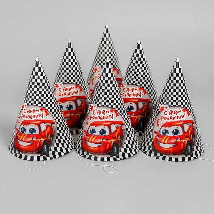Колпак бумажный «С днём рождения», тачка, набор 6 шт. — Характеристики