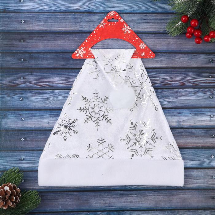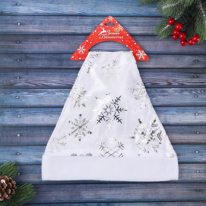 Колпак новогодний «Белый со снежинками» 28×38 см, белый