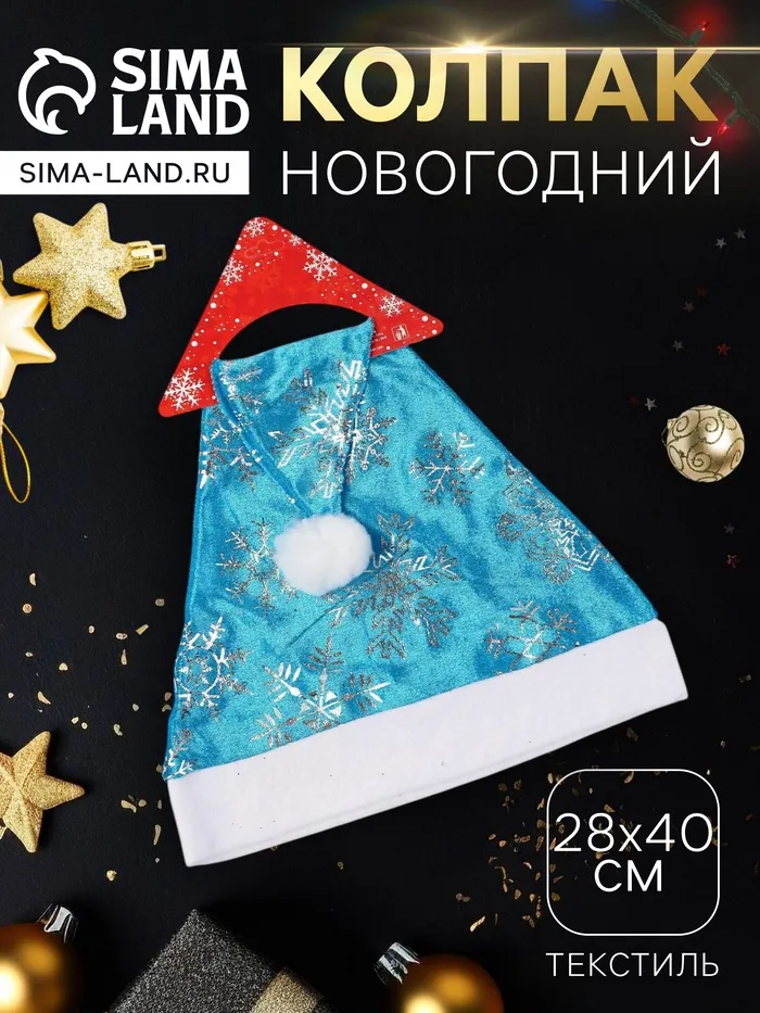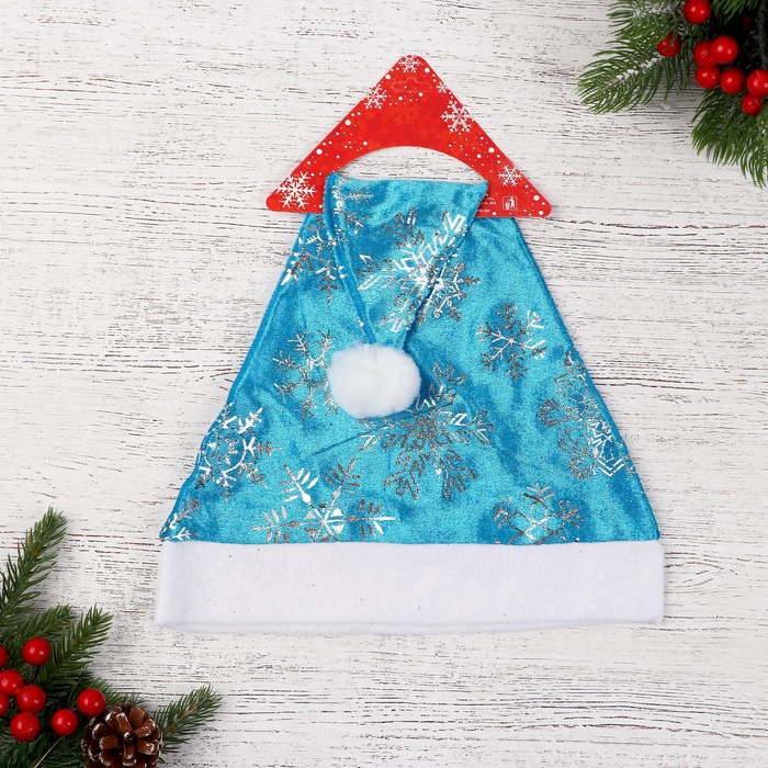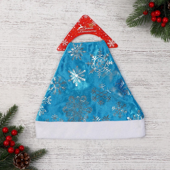 Колпак новогодний «Блестящие снежинки» 28×40 см, серебристо-синий — Характеристики