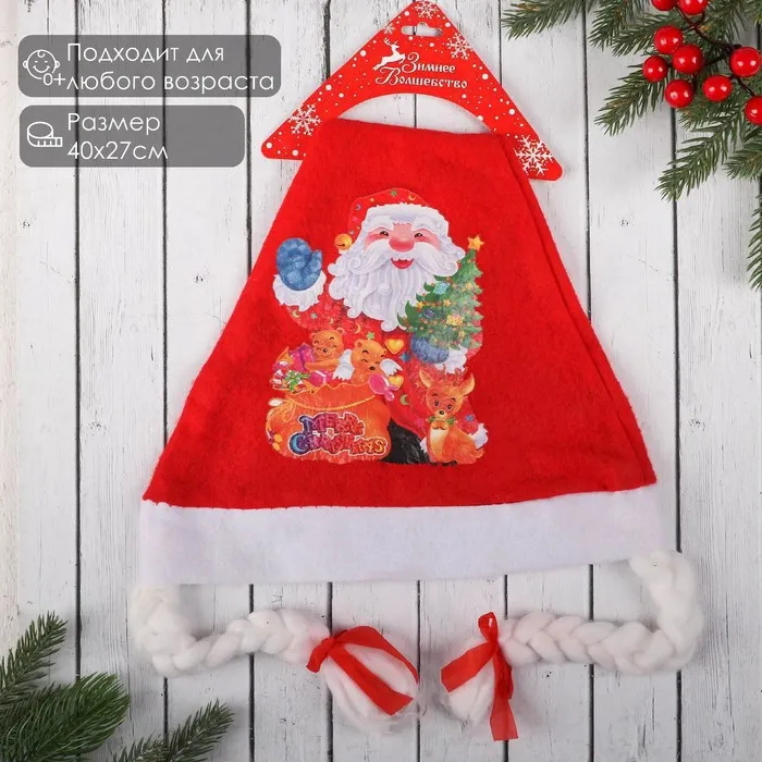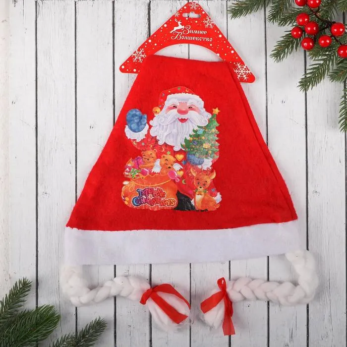 Размер изделия универсальный: аксессуар подойдёт как для ребёнка, так и для взрослого. А мягкий текстиль позволит носить колпак с комфортом на протяжении всей новогодней ночи.