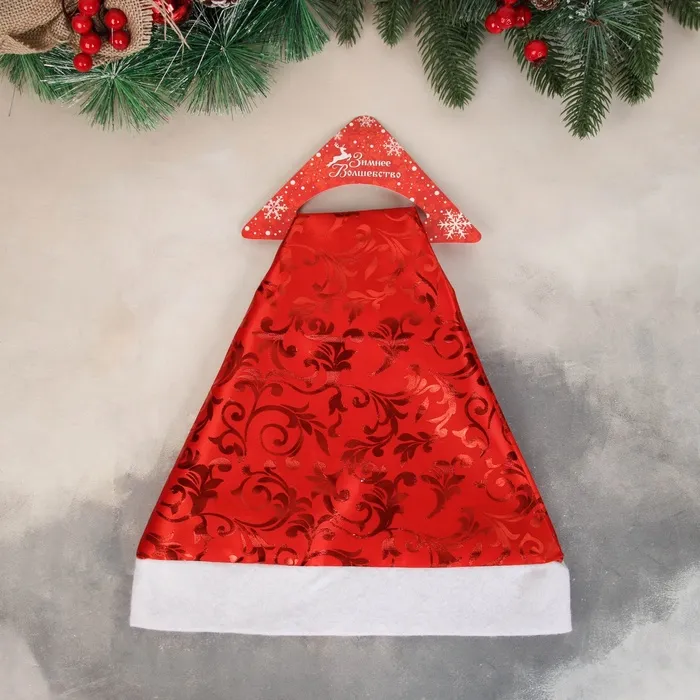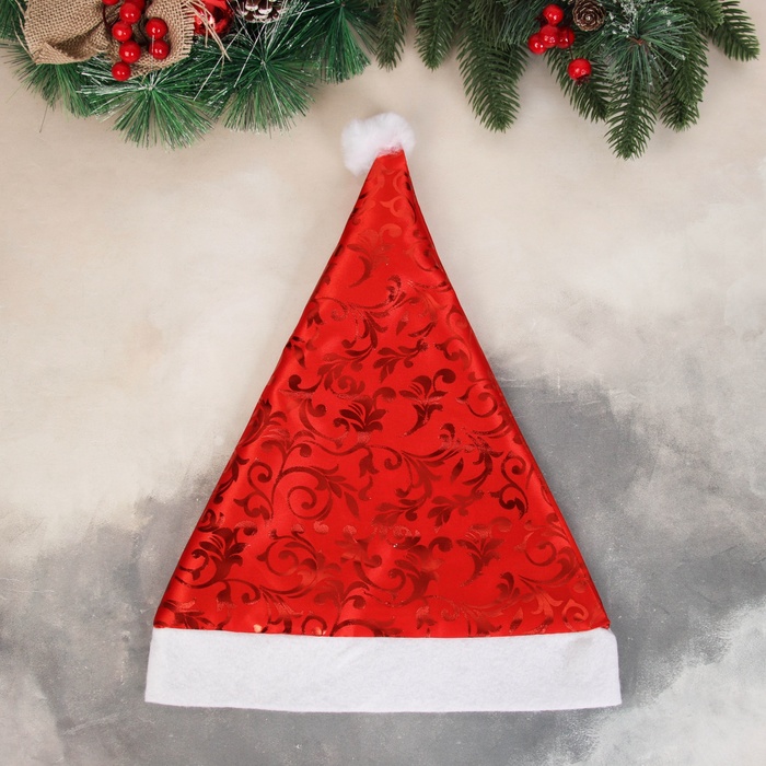 Колпак новогодний «Узор» с блеском, 26×38 см, красный