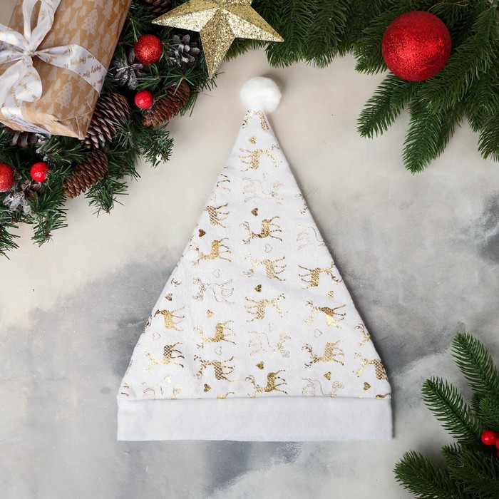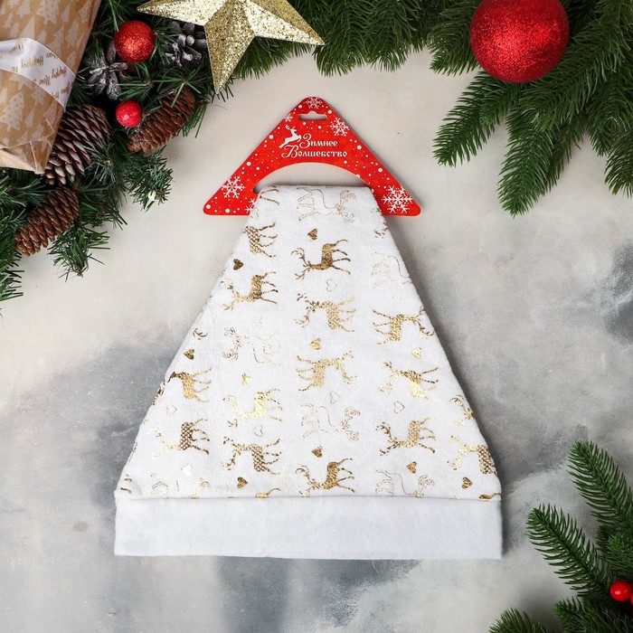 Колпак новогодний «Олени и сердца» 27×35 см, белый — Характеристики
