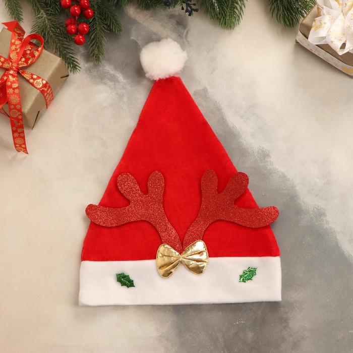 Колпак новогодний «Оленьи рожки», с бантиком и снежинками, 25×35 см