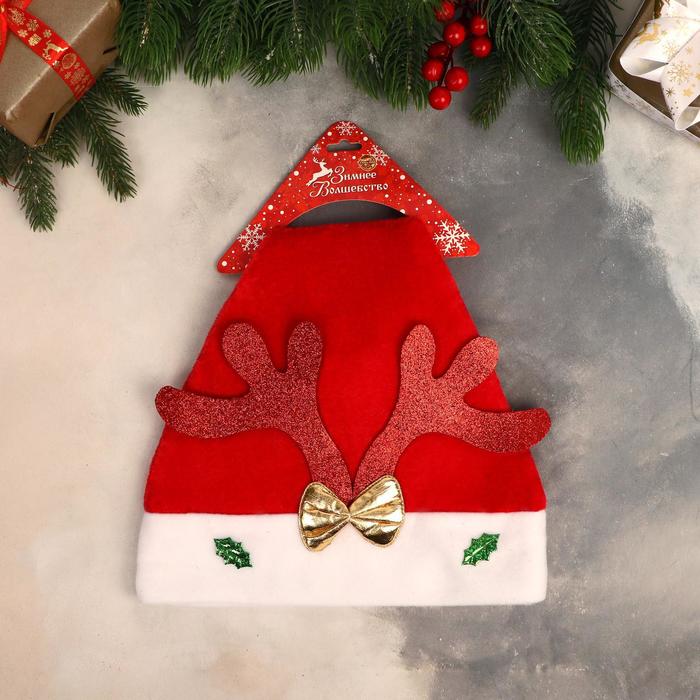Колпак новогодний «Оленьи рожки», с бантиком и снежинками, 25×35 см — Характеристики