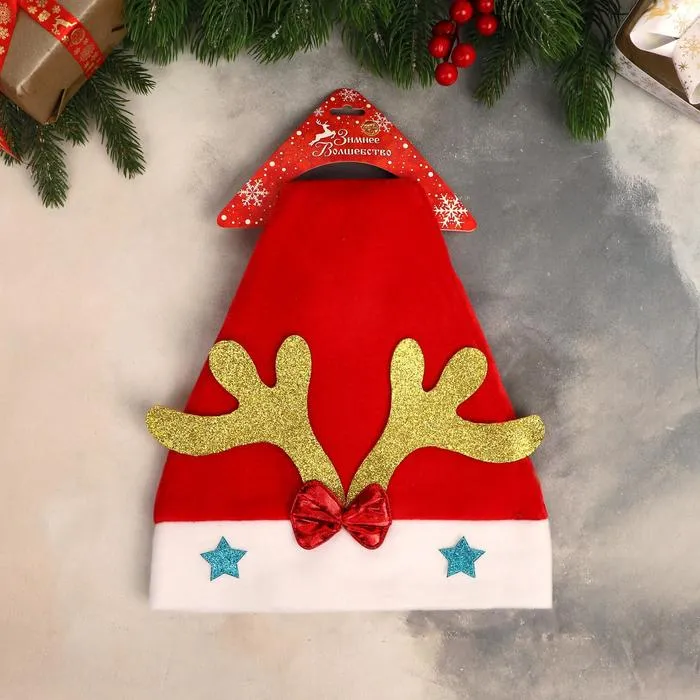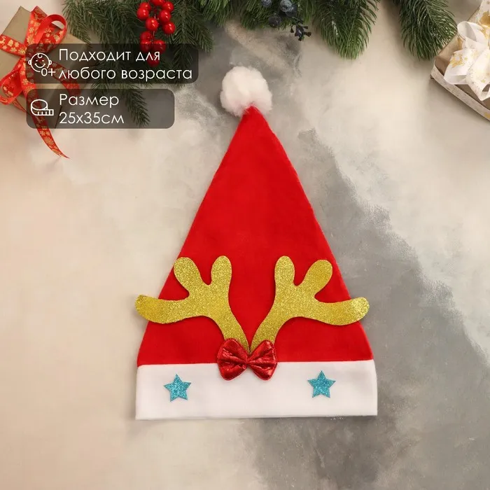 Колпак новогодний «Оленьи рожки», с бантиком и звёздами, 25×35 см — Характеристики