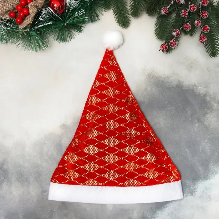 Колпак новогодний «Праздничные ромбы» 28×39 см, красный — Характеристики