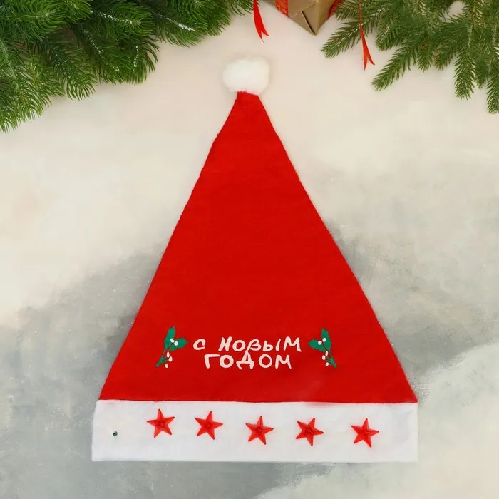 Колпак новогодний «С новым годом», 28×40 см, красный — Характеристики
